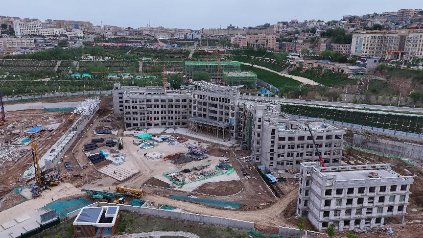 近日,在東鄉縣第八中學項目建設現場,1#教學實驗綜合樓、教師公寓樓、宿舍樓等建筑主體已經全部完成,餐飲中心、綜合樓、2#樓及多功能廳剩余主體也在緊鑼密鼓地施工中。各類工程機械轟鳴、通力合作,工人們分工協作、加緊作業,忙碌的身影穿梭于各施工區域。