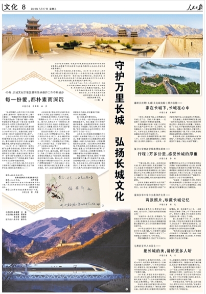 “長城是一個連接城市與鄉村、傳統與現代的精神紐帶,它是珍貴的文化遺產,在一代代中國人心目中占有重要地位,總能激發起人們的豪情壯志?!睆埑φf。
