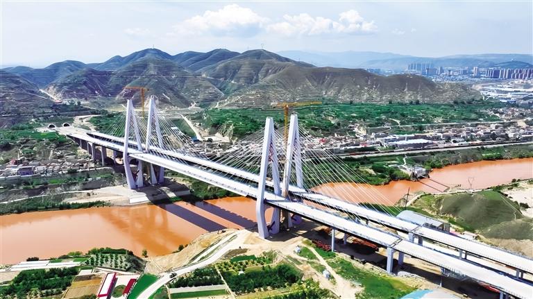 桑園子黃河大橋2020年2月10日開工建設,全體建設人員堅守1600多個日夜,克服了大橋橫跨黃河天險、桑園子山險區、隴海鐵路、東金公路等難題,研發了國內最大噸位塔間金屬消能器、黏滯阻尼器和鋼桁梁-UHPC輕型組合結構,以“專業、專注、精益、創新”的工匠精神,確保了大橋的建設進度和施工質量。