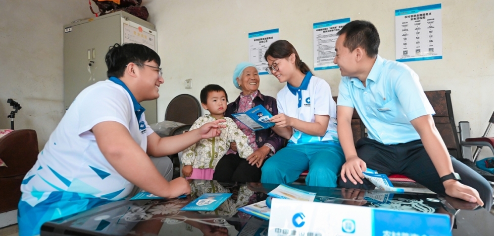 建行實習生們向群眾(右三)介紹“裕農通”平臺。楊藝鍇攝