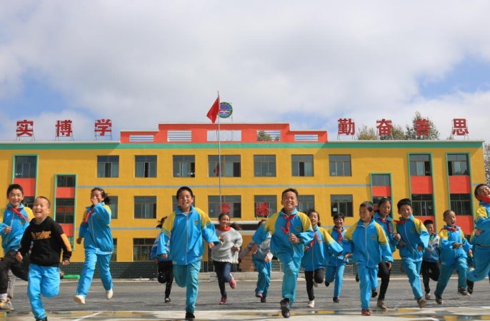 2020年甘肅省臨夏州康樂縣三條溝小學師生搬進新校園。甘肅省教育廳供圖