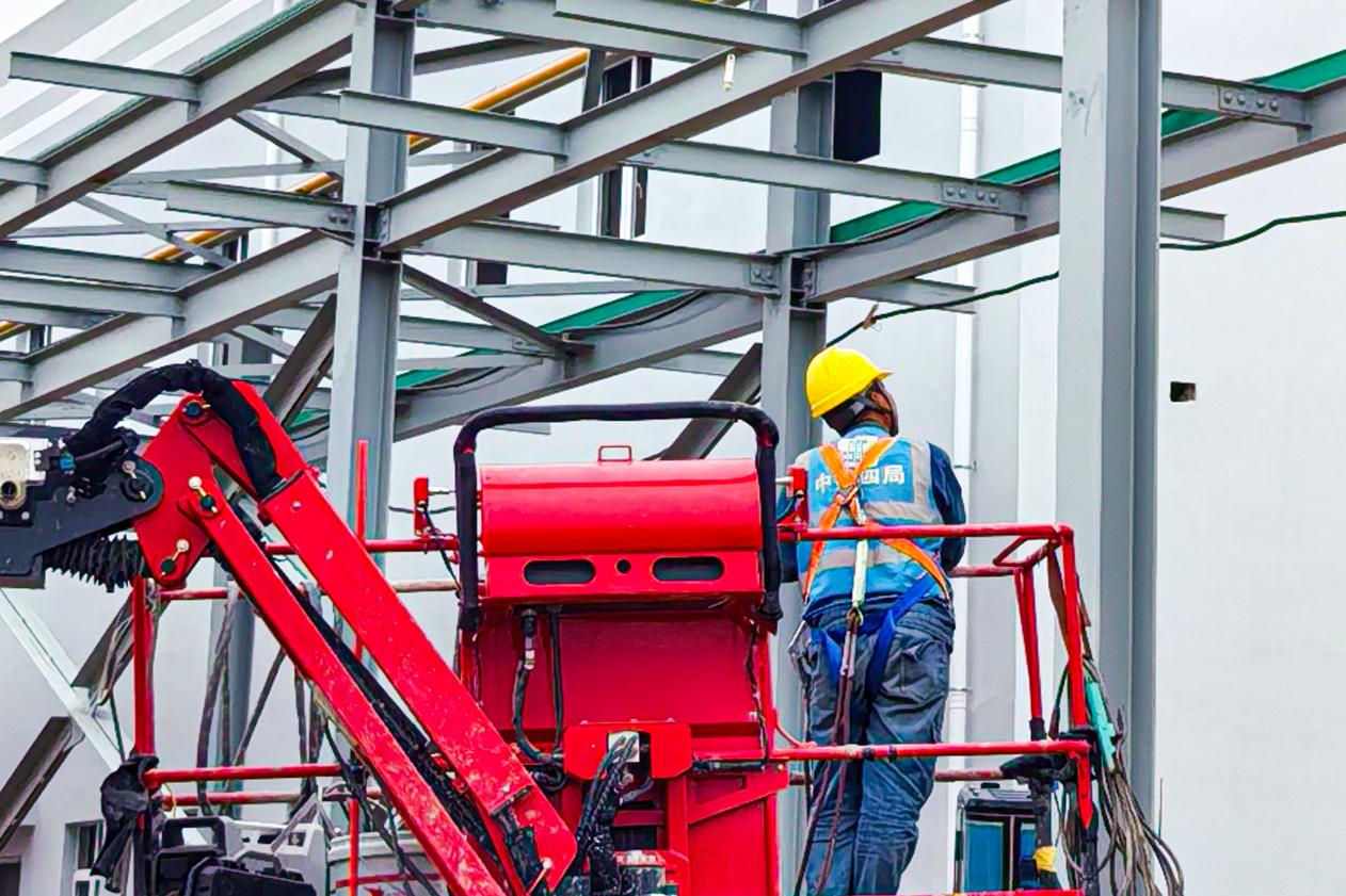 蘭州新區專精特新化工產業孵化基地C區項目工人正在進行鋼結構橋架安裝。中建四局供圖