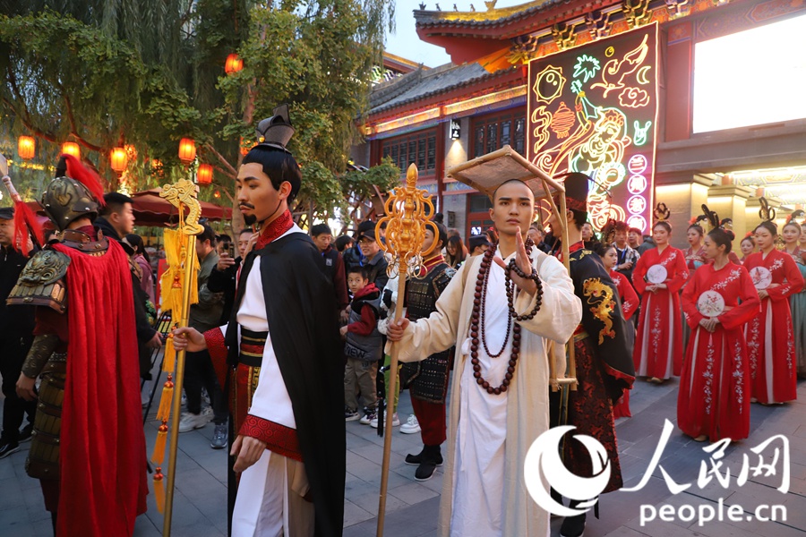 人民網蘭州10月2日電 (記者黃帆)9月30日晚,以“絲路印跡·千年金城”沉浸式絲路大劇在蘭州市七里河區蘭州老街舉行首演。