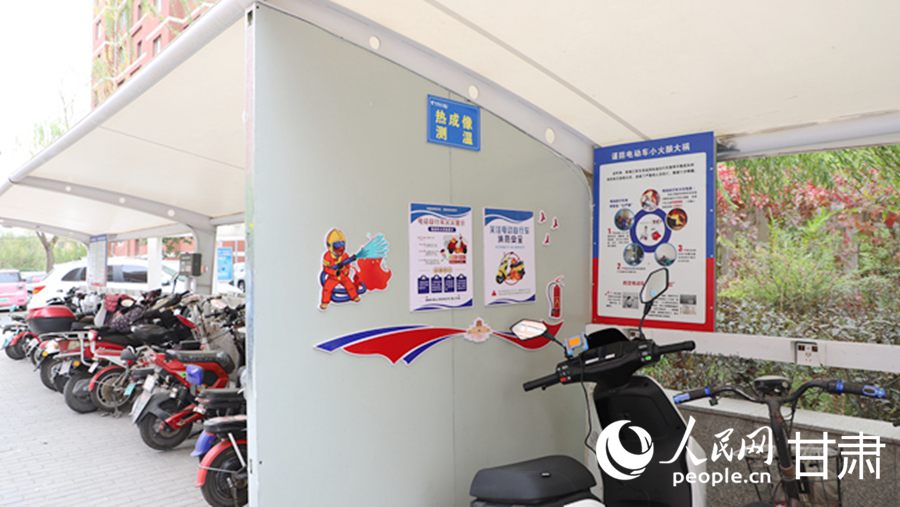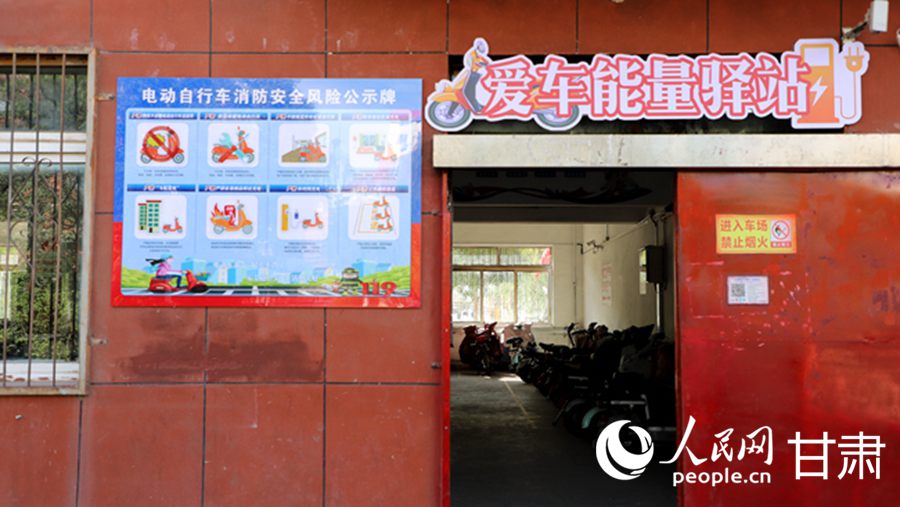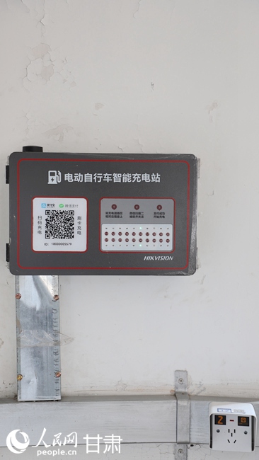 嘉峪關市大眾世紀園小區的“愛車能量驛站”內停放著正在充電的電動自行車。人民網記者 邵蘭攝