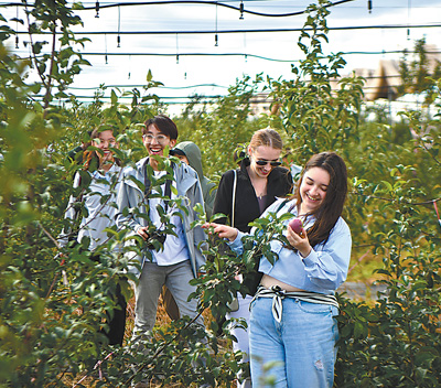 采礦不見礦,黃土披綠裝。礦山復墾區的千畝林果示范園里,一片郁郁蔥蔥的果園映入眼簾,蘋果、李子、梨、杏等果樹枝葉繁茂,果實累累。品嘗著甘甜的果實,北京石油化工學院烏茲別克斯坦留學生阿扎馬特豎起了大拇指,并用標準的中文稱贊道:“滿分!”