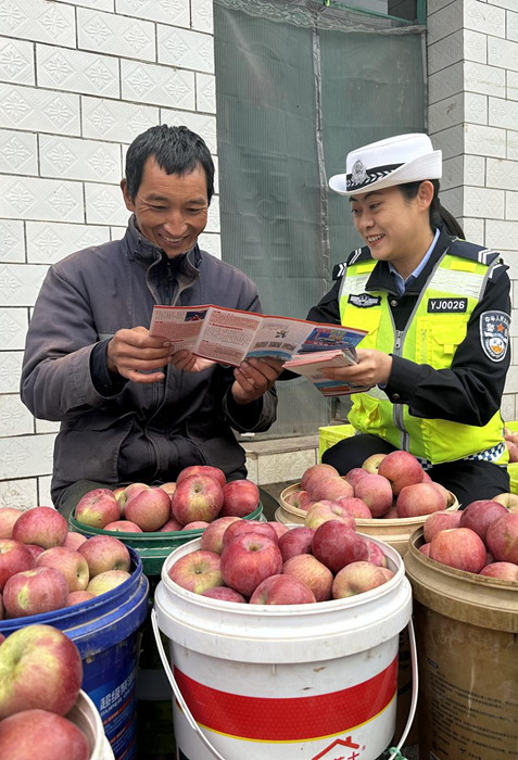 深秋時節,甘肅省臨夏州永靖縣各地果園迎來豐收季。連日來,永靖縣公安局交警大隊組織開展“美麗鄉村行·交警護‘蘋’安”宣講活動,在果園、銷售站、零售點等區域開展主題宣傳,把交通安全知識送到群眾身邊。