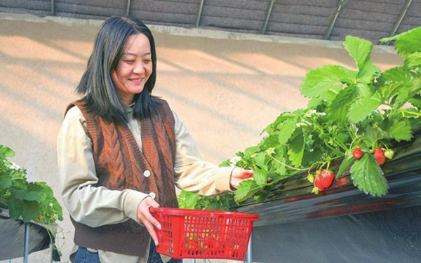 “目前草莓進入采摘季,每天都有游客前來采摘。我們今年種植草莓共計30畝,品種有隋珠、章姬等,估計畝產在3000斤以上,預計產值300萬元左右。同時,我們還推出了盆栽草莓和盆栽百合等新產品共計4000盆?!鼻卮ㄞr業公司相關負責人說。