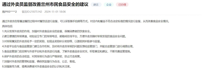 人民建議丨蘭州網友建議外賣員變身“食品安全監督員”獲回應