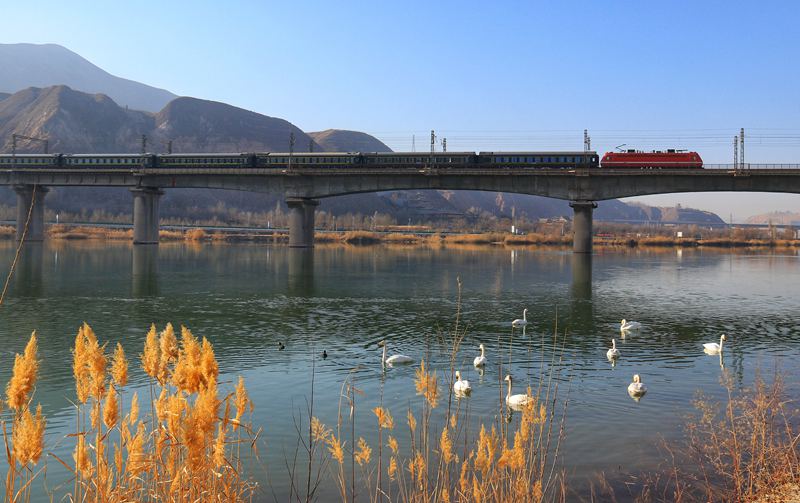 隨著黃河蘭州段生態環境不斷改善,每逢冬季便有白天鵝遷徙至此。想要坐火車與天鵝同框,有兩條鐵路可供選擇。