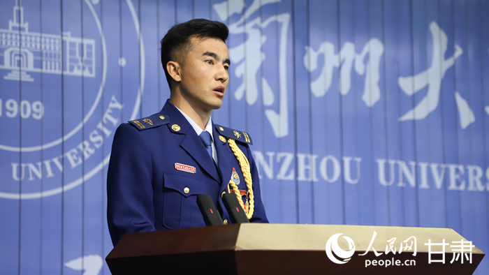 2018年12月,正在休假的蘭州新區消防支隊專職消防員趙良忠在銀行辦理業務時遇到一起搶劫案件,他協助警方制服歹徒,并幫失主追回了8萬多元現金。圖為趙良忠現場宣講。人民網記者 邵蘭攝