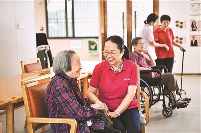 廣東省深圳市福田區積極應對人口老齡化,打造高品質都市養老模式,構建“15分鐘優質養老服務圈”,讓“老有所養”走向“老有頤養”。圖為在福田區福保街道長者服務中心(益田),工作人員陪伴老人聊天。