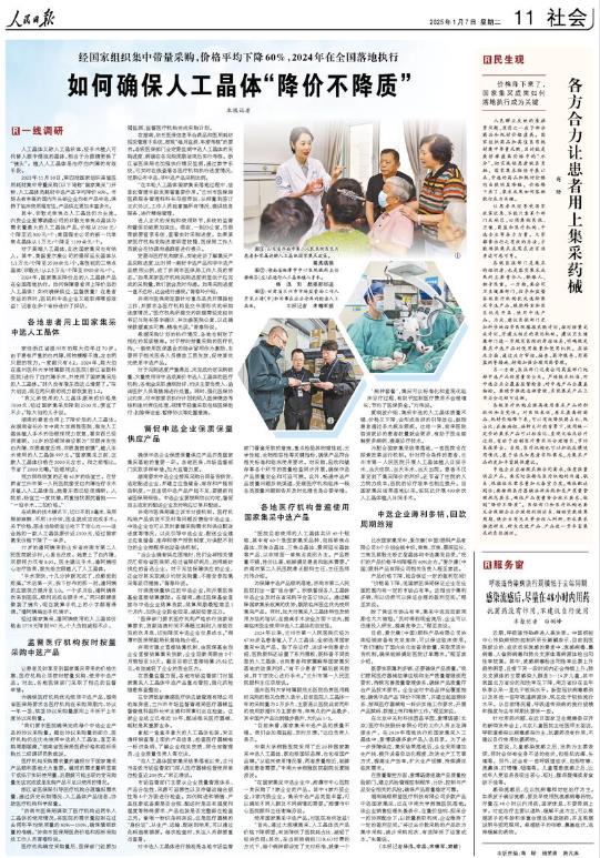 2024年,國家集采降價后的人工晶體產品在全國落地執行。如何保障患者用上降價后的人工晶體?如何確保供應、監督質量?在患者受益的同時,醫院和中選企業又能取得哪些效益?記者在多個省份進行了探訪。