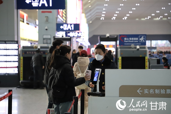 春運首日,蘭州西站工作人員引導乘客進站。人民網記者 黃帆攝