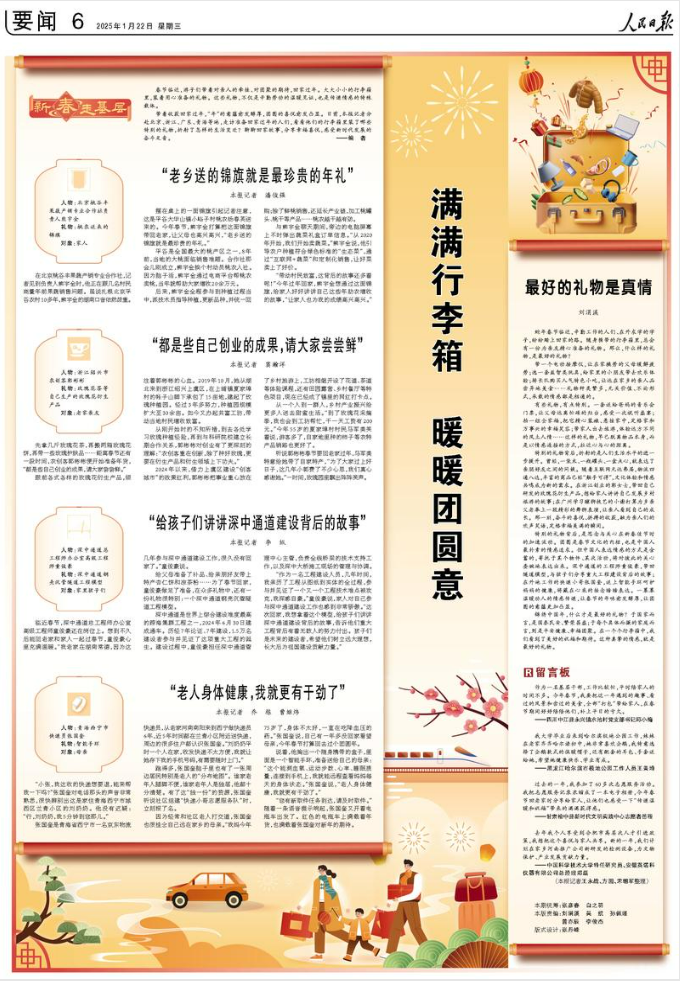 作為一名基層干部,工作比較忙,平時陪家人的時間不多。今年春節,我要把這一年遇到的趣事、看過的風景和嘗過的美食,全部“打包”帶給家人,在春節期間好好陪陪他們,補上平日的虧欠。