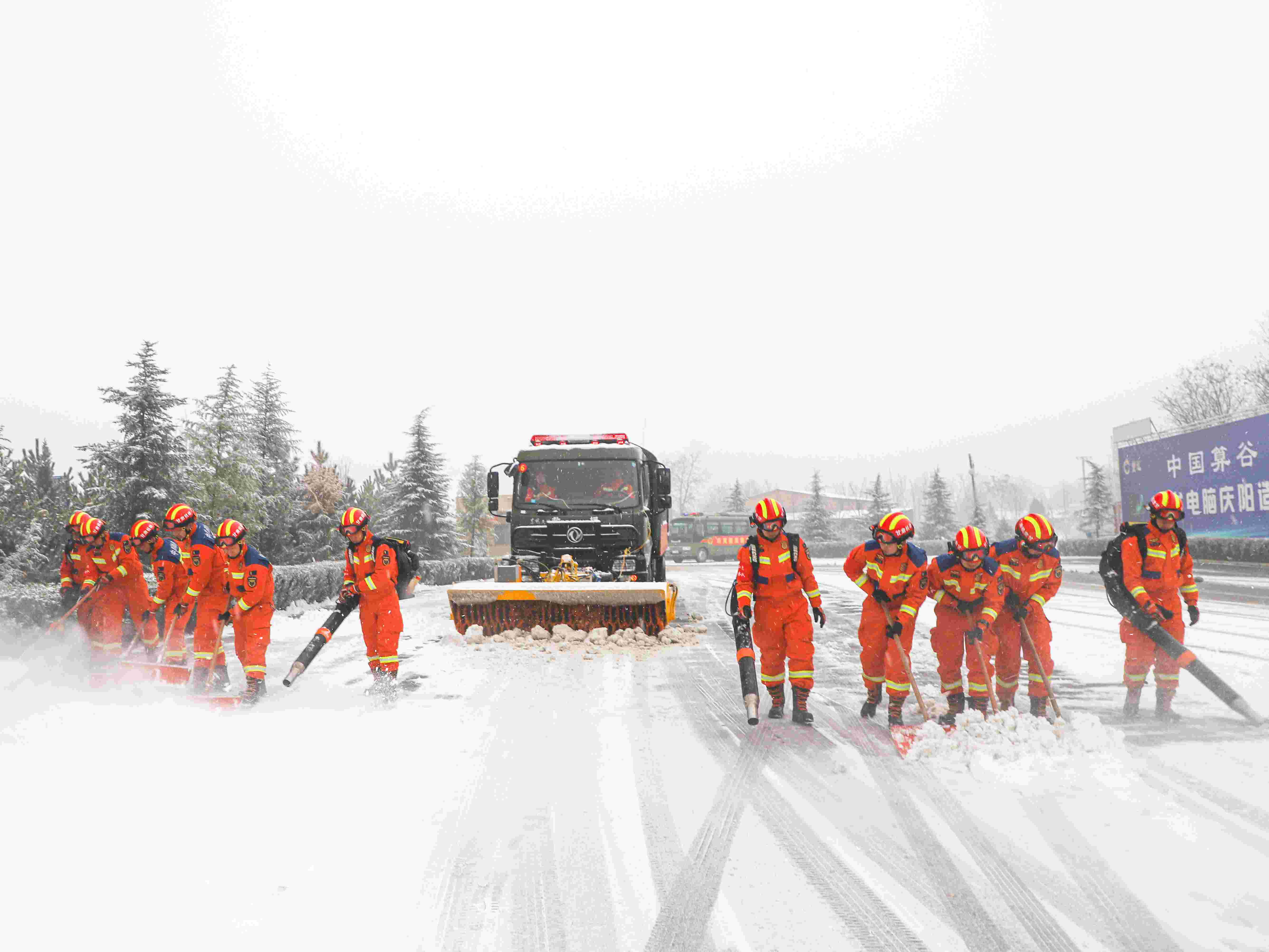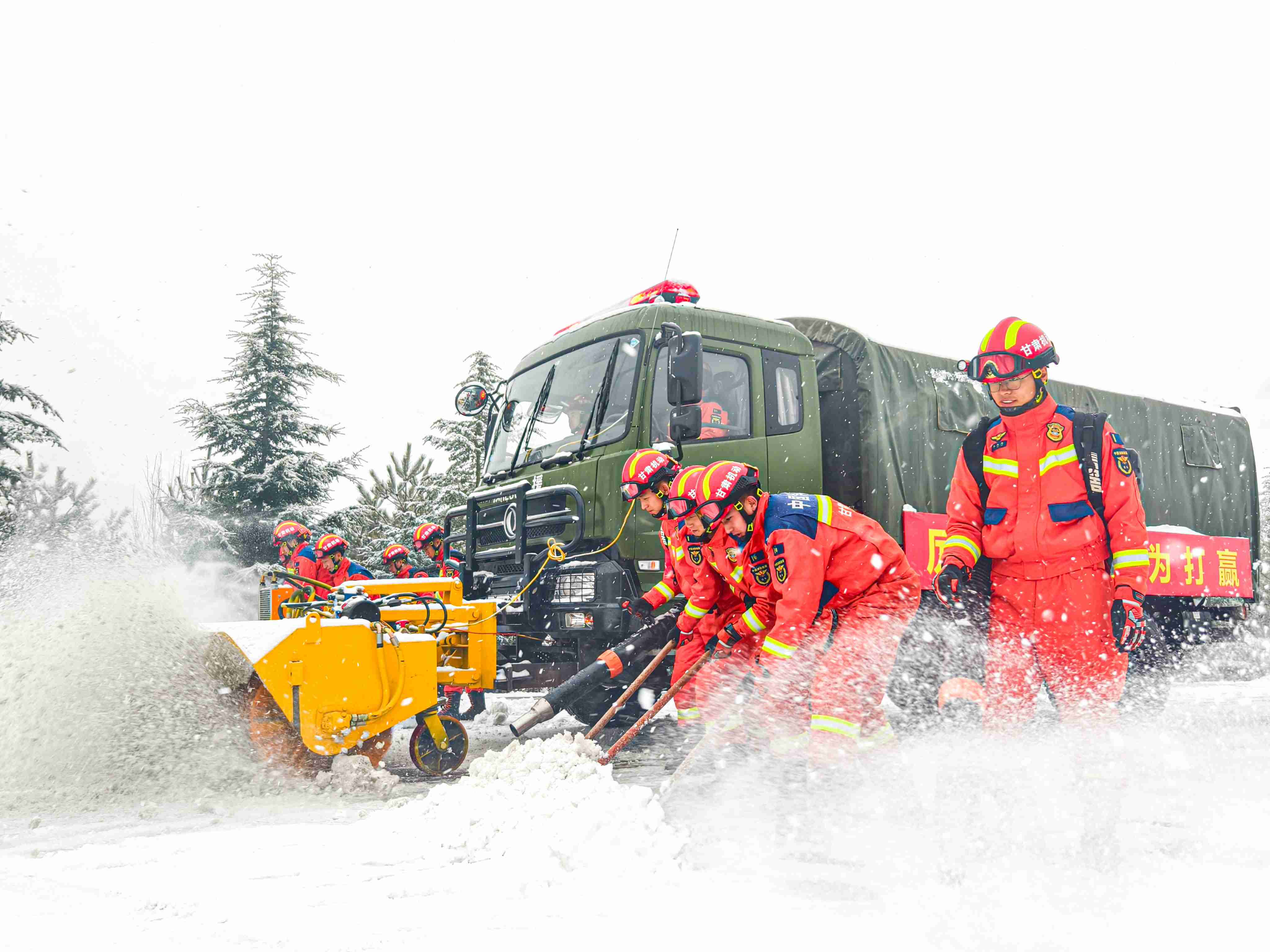 1月24日,甘肅森林消防總隊慶陽大隊在慶陽南高速路口清除積雪。甘肅森林消防總隊供圖