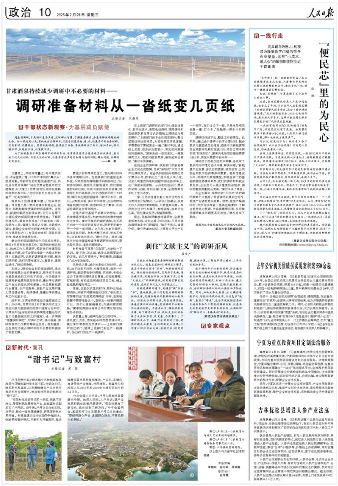 近年來,甘肅省持續推動為基層減負工作。2019年,甘肅印發《關于解決形式主義突出問題為基層減負的若干措施》;去年初,甘肅發布《全省政府系統持續推進整治形式主義為基層減負的工作措施》,進一步明確“注重調研實效”,對調研方式、調研線路、調研報告和工作素材等做出規定。落到基層,這些規定為減少調研中的不必要材料提供了制度支撐。