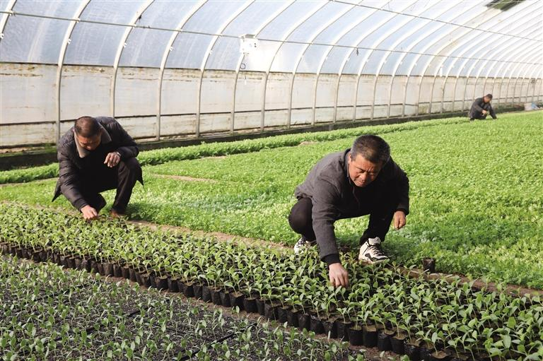 村民在蔬菜大棚里給秧苗除草。安娜 攝