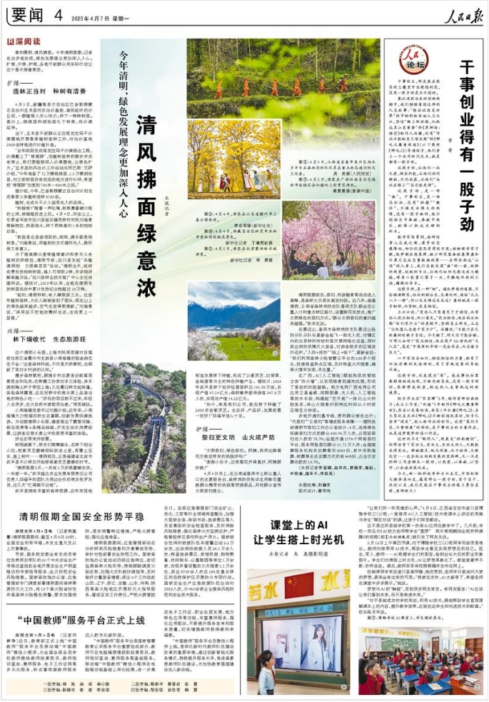 春和景明,清風拂面。今年清明假期,記者走訪多地發現,綠色發展理念更加深入人心。擴綠、興綠、護綠,各地干部群眾用實際行動讓這個春天綠意更濃。