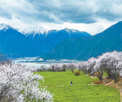 4月4日,西藏自治區林芝市米林市索松村的桃花景色。