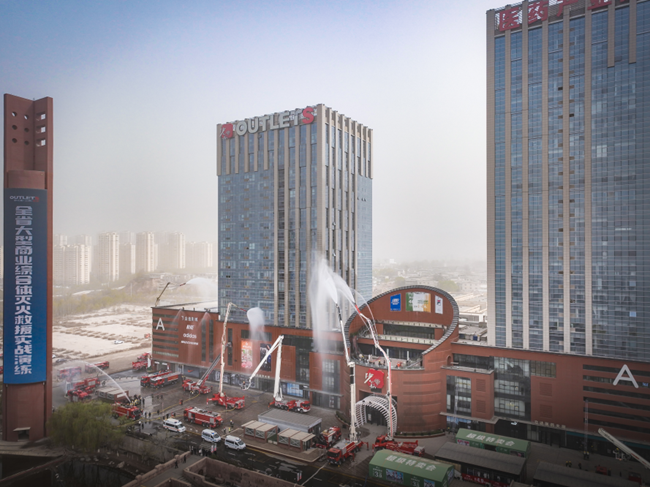 為破解大型商業綜合體滅火救援難題,提升隊伍滅火救援能力水平,4月12日,甘肅省消防救援總隊在蘭州市安寧區砂之船奧特萊斯組織開展大型商業綜合體滅火救援實戰演練。