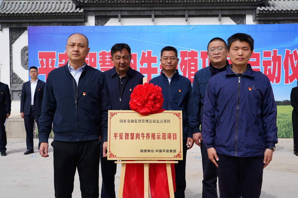 在此次啟動儀式上,中國平安集團甘肅統管黨委書記,平安產險甘肅分公司黨委書記、總經理韓維,與國家金融監管總局派駐科托村第一書記范宸為平安智慧肉牛養殖示范基地揭牌。