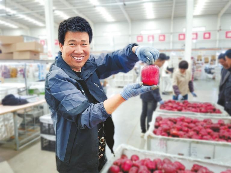 “來,嘗嘗看?!鼻匕惭┰酚邢挢熑喂径麻L蔡二成隨機拿起一顆蘋果,一刀切下,果肉雪白緊實,咬下時發出清脆的“咔嚓”聲,乳白色的酸甜汁液在舌尖綻開。