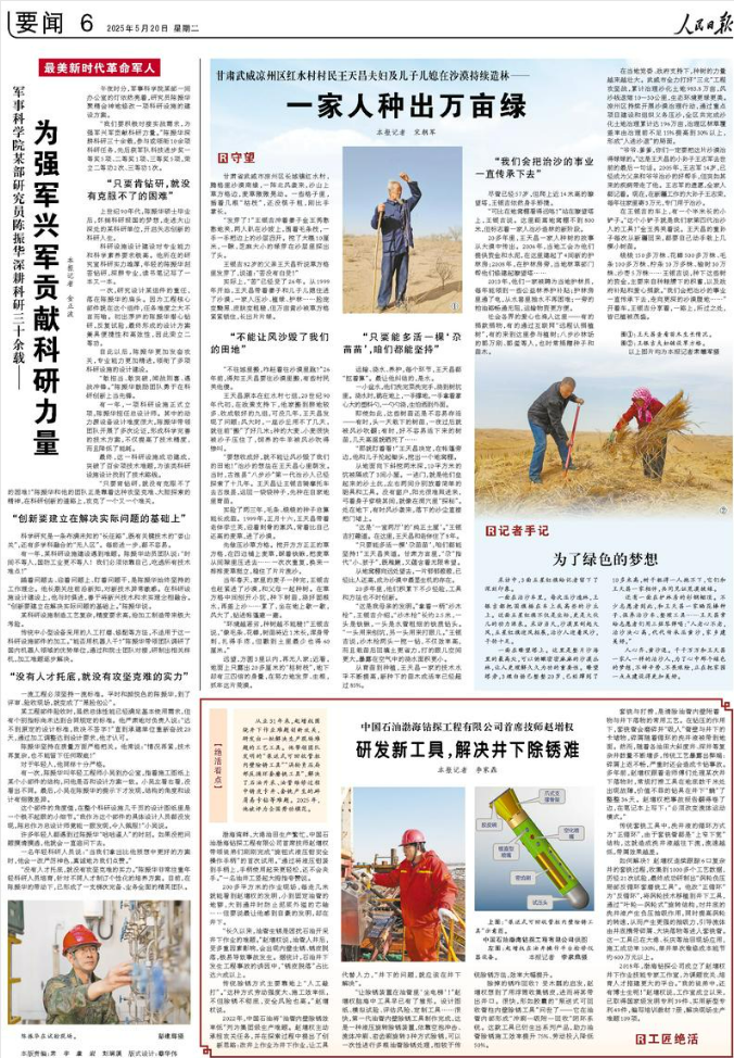 人心齊、黃沙退。千千萬萬和王天昌一家人一樣的治沙人,為了心中那個綠色的夢想,不辭辛勞、不畏艱險,正在把家園一點點建設得更加美好。