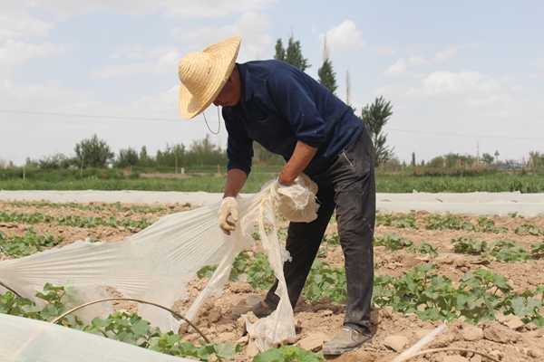“這薄膜在前期可幫了大忙,既能保溫保濕,還能預防病蟲害,讓瓜苗茁壯成長?,F在到了該揭膜的時候,可不能耽誤?!泵C州鎮河州堡村農戶朱萬全一邊忙著手中的活兒,一邊介紹。