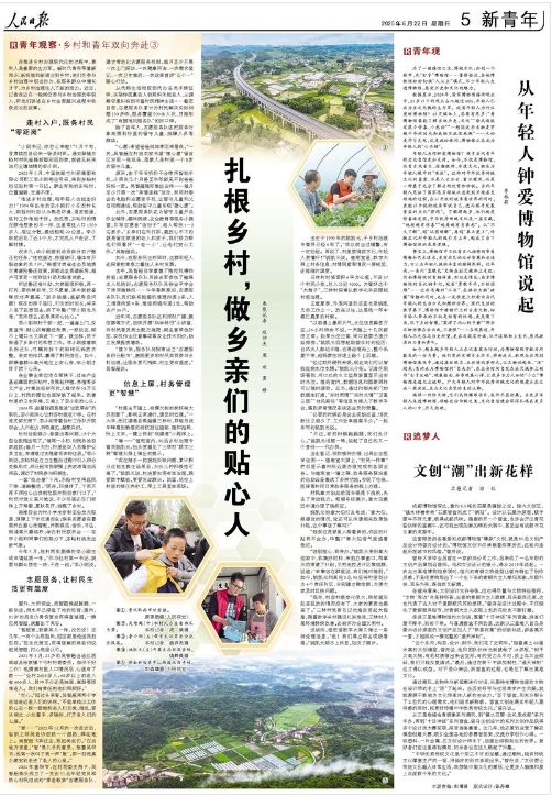 在推進鄉村治理現代化的過程中,青年人是重要的生力軍。新時代青年帶著新知識、新技能和新理念到鄉村,他們在參與鄉村治理中擔當作為,在服務群眾中增長才干,為鄉村治理注入了新的活力。近日,記者走近在一線崗位參與鄉村治理的年輕人,聽他們講述在鄉村全面振興進程中收獲成長的故事。