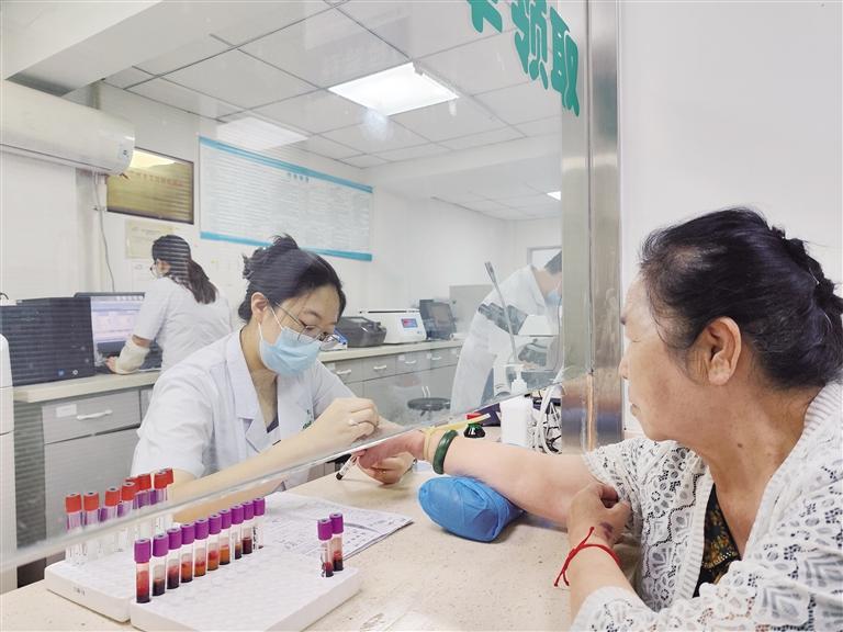 記者在體檢現場看到,醫護人員細致地為老人們進行血壓血糖檢測、心肺聽診、腹部B超、血常規等基礎檢查,還不時俯身為聽力較弱的老人重復講解檢查結果,提醒夏季防暑和慢性病日常管理要點。