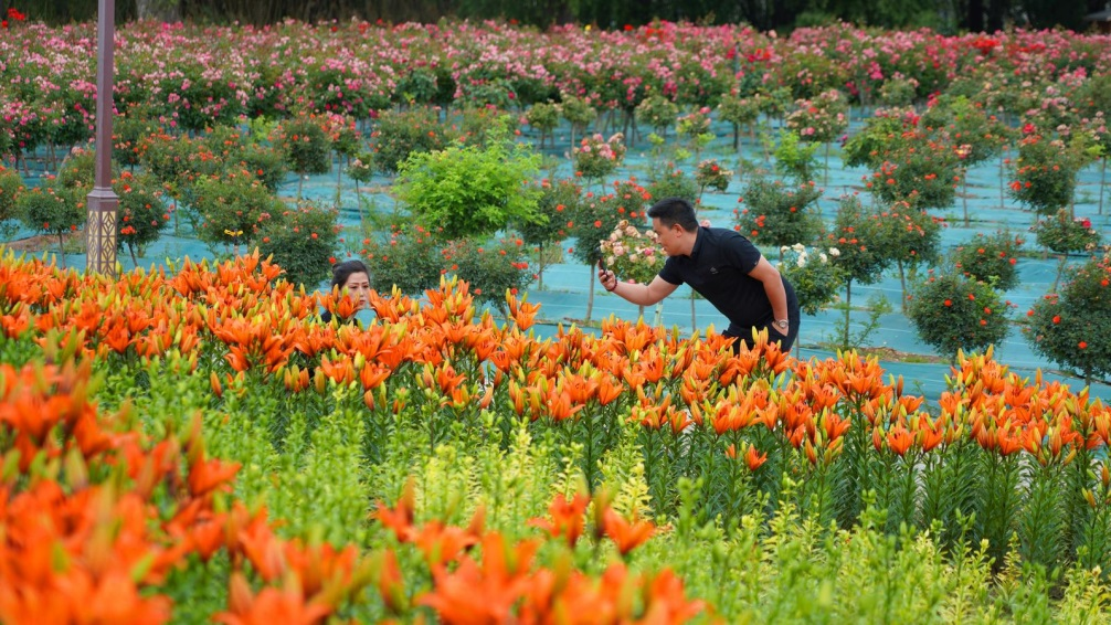 步入花堤,一大片色彩艷麗的香水百合花田便鋪展眼前,宛如大自然精心繪制的巨幅油畫。一株株香水百合在微風中輕盈搖曳,馥郁芬芳、沁人心脾,令人沉醉其中。市民游客紛紛穿梭于花叢之間,用手機記錄下這美好的瞬間,享受悠閑愜意的時光。